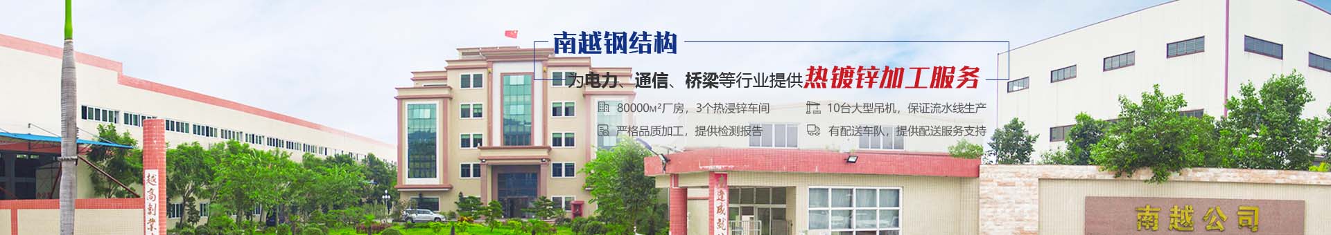 廣東省佛山市高明南越鋼結(jié)構(gòu)制造有限公司是一家專業(yè)加工熱浸鋅鋼鐵構(gòu)件、生鐵、球鐵鑄件、輸電線路鐵塔、燈桿、燈具配件、微波塔、造船鐵件及各種角鐵、管材、無(wú)縫管、扁鐵、圓鋼、槽鋼、C形鋼、高速公路護(hù)欄、交通標(biāo)志鐵件等一切戶外鐵材防銹加工工廠,成立多年,經(jīng)驗(yàn)豐富,技術(shù)力量雄厚,公司占地面積10000多平方米,地處珠三角腹地——樂(lè)從鋼鐵市場(chǎng)附近。